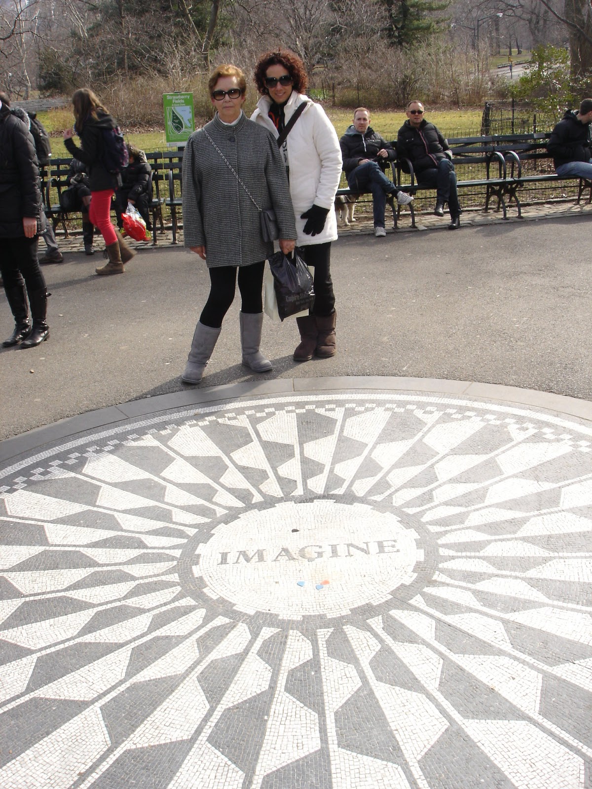 Dentro del parque, a esa altura, como homenaje hay un mosaico en el suelo con la palabra «Imagine», está emplazado en los jardines llamados «Strawberry Fields«, en honor a la popular canción de los Beatles. Como curiosidad os cuento que leí que al inaugurar los jardines, cinco años después de su muerte, varios diplomáticos mandaron regalos, los de la URSS mandó abedules, desde Canadá llegaron arces, Holanda mandó narcisos y la princesa Grace Kelly CONEJOS, hembras eso sí, para no quedarse algún día sin, curioso ¿eh?