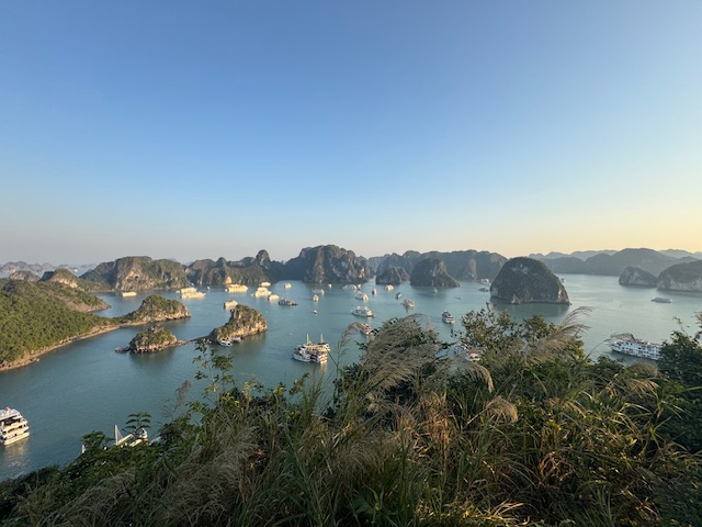 El barco navegaba lentamente entre casi dos mil islas e islotes, un paisaje simplemente impresionante. No hace mucho, algunos pescadores y cultivadores de perlas vivían en estas islas, pero fueron trasladados a lagos cercanos para dejar la bahía despejada para el turismo. Algunos siguen viviendo allí, mientras que otros se ganan la vida llevando turistas en barcas de remo o lanchas motoras.
