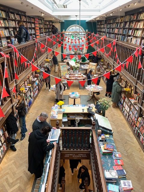 Perhaps the most beautiful of all is Daunt Books, in Marylebone, with its glass skylight and wooden balcony that make it truly unique. There, among maps, travel editions, and endless shelves, one could lose track of time for hours.