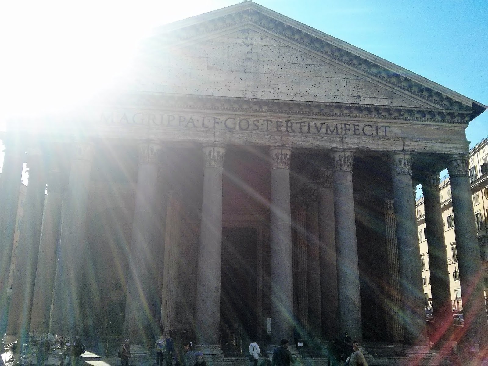 Otro de mis lugares predilectos en Roma es el Pantéon de Agripa. Cuando apareció entre sus callejuelas fue ESPECTACULAR, nos quedamos admiradas. Con esas gigantescas columnas sosteniéndolo, y al ver su interior circular con su agujero en el techo, que produce efectos mágicos, fue maravilloso. Dicen que cuando llueve las gotas parecen estar suspendidas en el aire. Él al completo fue otra fabulosa sorpresa.