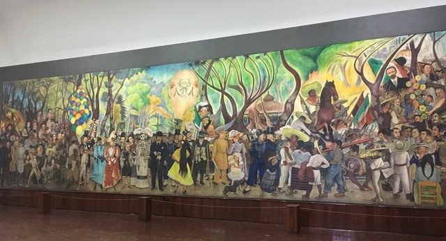 Paseando por esa misma Alameda llegamos al Palacio de Bellas Artes, un IMPRESIONANTE edificio art decó, que alberga murales de artistas como Orozco y Tamayo, además de algunos de Diego; uno en particular, es el que estuvo pintando en el edificio Rockefeller de Nueva York, y que el mismo Rockefeller mandó destruir por temas políticos entre ellos.
